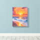 Golden Hour Orange Sunset Beach Ocean Waves Sky Painting Canvas Print