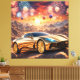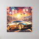 Lienzo golden luxury car in a desert landscape