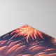 Digital art of a golden vehicle in a desert place with fireworks and balloons standing out in the landscape sky.