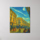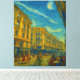 Step into a sunlit Mediterranean city where golden architecture glows under swirling blue skies. This vibrant artwork captures urban life, elegant buildings, and lively street scenes in a timeless, artistic style. Perfect for home décor, travel lovers, and those who adore European cityscapes.