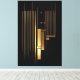 Slender and solid golden lines dance against absolute black, accompanied by circles and rectangles evoking rhythm, silence, and elegance. A visual score where every element vibrates with precision—high-impact minimalist art, perfect for spaces valuing sophistication, balance, and monumental presence.