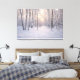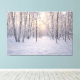 A peaceful winter forest illuminated by warm golden sunlight filtering through snow-covered birch trees. This Scandinavian-inspired landscape captures the quiet beauty of a Nordic winter morning, with soft snow, delicate light, and a tranquil atmosphere. Perfect home art to bring warmth, calm, and natural elegance to your home, cabin, or modern minimalist interior.