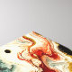 Ein abstraktes Gemälde mit goldenen Flüssen, die sich durch die Farben Weiß, Rot, Blau und Schwarz schlängeln. Die dynamischen Muster entstehen durch die Technik des Fluid Paintings.