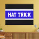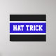 Este diseño deportivo de hockey presenta el atlético "GORRA TRICK" dentro de franjas reales azules y blancas contra fondo negro.