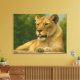 Trae la fuerza y la serenidad de la naturaleza a tu espacio con este impactante retrato de una leona sobre una cornisa de piedra. Sus ojos ámbar se encuentran con los tuyos con tranquilidad, enmarcados por la piel dorada y la luz solar desplegada. Esta obra de arte, situada en un entorno de nubes suaves y exuberante vegetación, refleja la esencia del poder femenino y la elegancia natural.
