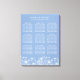 Ayude a sus huéspedes a encontrar su mesa con este elegante lienzo de asientos azules en polvo de flores silvestres. Perfecto para sentarse en un caballete fuera del lugar de la cena.