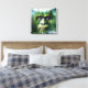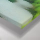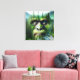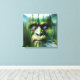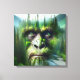 Arte mural de tela con temática sasquatch, un fresco ilustracion doble de pie bigoso con un bosque, montañas y doble exposición al río. tonos azul y verde bonito.