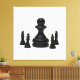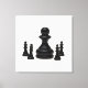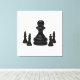 Gran Jefe. Gran peón negro de ajedrez rodeado por cuatro pequeños reyes de ajedrez aislados en un fondo blanco. Tomando grandeza para la grandeza.