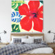 Impresión de lienzo de pintura de Hibiscus rojo grande y negrita