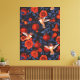 Ramas de pomeganato pintadas a mano con hojas, frutos y flores y colibríes