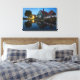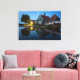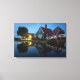 Paisaje de lienzo de una casa tradicional de madera usada como una granja de quesos con pintura verde con tejas rojas con reflejo en el agua al inicio de la noche al crepúsculo en el museo Zaanse Schans en Holanda.