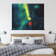 La obra de arte original y abstracta de ZoeSPEAK en este Canvas Print fue creada a partir de la fotografía original de Zoe en un armario de una hoja de plátano. Las curvas verdes ondulantes de las hojas gigantes y con lazos forman el fondo de las gotas de lluvia y los colores, rojo y amarillo.
