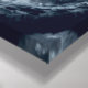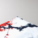 Una elegante grúa japonesa en vuelo sobre un tranquilo lago en un impresionante jardín japonés, con un fondo de delicados tonos blancos y azules, en marcado contraste con las vibrantes hojas rojas de los arce.