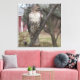 Tinta de lona envuelta de tamaño masivo de Hawk de cola roja encaramada en una rama de árbol de manzanas cangrejo a pocos metros de la ventana donde se tomó la foto en NJ, con graneros rojos en el fondo. Diseñado para 24" x 24". Disponible en tamaños adicionales a través de mi tienda. Hermosa vista de la naturaleza cerca. Fotografía original Copyright © 2009 TamiraZDesigns.