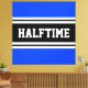 Este diseño deportivo, atlético, presenta texto HALFTIME en negrita dentro de una banda ancha negra realzada con doble rayas blancas de carreras contra fondo azul brillante. El texto de este diseño se puede personalizar.