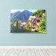 lienzo de Hallstatt, pueblo alpino y lago de Austria