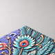 A highly detailed relief carving of a peacock, the peacock is blue with gold legs and a white and gold back, the background is a deep blue with swirling patterns and flowers, the carving is very intricate and detailed, with a lot of small details, the style is reminiscent of folk art.