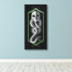 Echa un vistazo a esta sigilia de Marcos Oscuros, con la icónica serpiente nuda que viene de la boca de un cráneo encima de un panel verde y negro alargado.