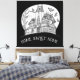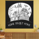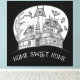 Add a spooky touch to your Halloween decor with this hand-drawn haunted house surrounded by flying bats. Perfect for prints, cards, stickers, or seasonal merchandise.