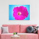 Lienzo Hermosa flor petunia rosa de fondo azul.
