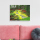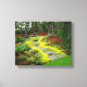 Vistas a un bonito jardín. Agua, flores rosas y amarillas, palmeras y cipreses. Foto tomada en el Parque Flor y Fjaere, región de Stavanger, Noruega.