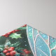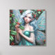 Un hermoso hada azul claro de cabello azul, con alas de perlance, vestido de bonito turquesa y blanco, sostiene un estribillo de holly rodeado de hojas y bayas.
