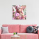 Un hermoso hada de cabello rosa con las alas brillantes vestidas con un vestido rosa bonito y joyas opales sostiene un solo cosmos mientras se está en un campo de cosmos.