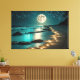 Bella playa de Luna Llena Océano Estelar Noche - Lujosas Paredes Art - Grandes Dibujos De tela
