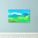 Este cuadro paisajístico presenta cielos azules y verdes brillantes.