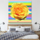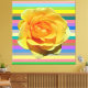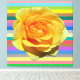 Hermosa rosa amarilla sobre rayas de arcoiris fondo lienzo impresión