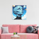 Arte mural de la fología. Un hermoso ser extraterrestre extraterrestre extraterrestre femenino con grandes ojos azules mirando hacia el espacio en las estrellas y planetas.