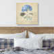 Lienzo floral Impresión de una preciosa flor azul hidrangea sobre papel vintage con letras caligráficas. Decoración botánica casera para disfrutar.