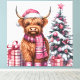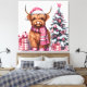 Cute vaca Highland con sombrero rosa de Santa, bufanda y botas con regalos y un árbol de Navidad Impresión hecha de una mezcla de algodón sin aditivos, nuestros lienzos de secado instantáneo crean impresiones duraderas resistentes a la desvanecimiento. Añade tus fotos familiares, fotos de vacaciones y otros momentos hermosos para crear recuerdos fabulosos para tu hogar.