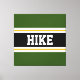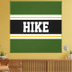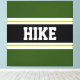 Este colorido diseño deportivo presenta texto en negrita HIKE dentro de una amplia franja central horizontal negra con rayas de carreras blancas y amarillas doradas contra rayas externas de color rosa brillante. El texto se puede personalizar.