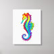 Arco de arcoiris, caballito de mar poligonal sobre fondo blanco. Tatuaje brillante.