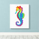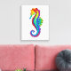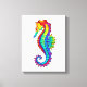 Arco de arcoiris, caballito de mar poligonal sobre fondo blanco. Tatuaje brillante.