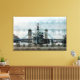 El HMS Belfast se sienta amarrado en el río Támesis con el imponente puente de la Torre de Londres detrás de ella en esta interpretación artística de este concurrido río inglés.