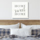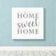 Hogar Dulce Hogar Dulce Hogar Dulce Hogar con fondo de impresión en burlap blanco.