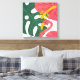 Lienzo Hoja tropical, flor hibiscus y flamenco