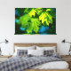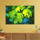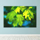 Hojas de arce verde fresco iluminadas por la luz del sol. Algunas vigas de luz logran atravesar el follaje grueso y hacer un juego impresionante de luces y sombras.