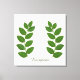 Impresión en lienzo de hojas de la bahía verdes modernas sobre fondo casi blanco. El texto se puede personalizar. La hoja de laurel siempre ha sido la hierba favorita de médicos, poetas y emperadores. Ideal para amantes de la naturaleza.