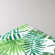 El diseño presenta bonitos ilustraciones de palmeras y hojas. Están pintadas con acuarela por un artista experto. ¡Las hojas verdes son absolutamente hermosas!