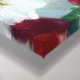 Arte de lienzo con "Hollyhocks and Sunlight" (1902) de Charles Courtney Curran. Originalmente una pintura al óleo sobre lienzo, la obra de arte presenta a una mujer de cabello rojo con flores de hollyhock rojas, rosas y blancas en un esquema de color de San Valentín. El pelo de jengibre de la joven está en un peinado y lleva un vestido blanco.