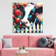 Lienzo Holstein Cow Picket Fence Red Roses Black Red