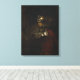 Esta es una reproducción de "A Man in Armor" de 1655 de Rembrandt van Rijn. Esta obra maestra de Rembrandt se subtitula "Alejandro Magno" y fue creada cuando el artista tenía cuarenta y nueve años. Había sido un artista destacado y miembro de la comunidad en Ámsterdam durante veinte años. Sin embargo, Rembrandt se acercaba a una crisis financiera cuando se produjo esta obra maestra. La pintura muestra el maravilloso uso de la luz de Rembrandt en sus obras con el brillo en el casco también expresado sobre el corazón en el plato de pecho. La bata roja se suma a la dramática naturaleza del retrato. Esta obra maestra tiene 137 cm de ancho y 104,5 cm de alto y se encuentra en la Galería de Arte de la Ciudad y Museo de Glasgow, Escocia.
