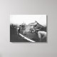 Lienzo Hombre viajando en zebra saltando foto de la cerca
