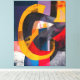 Arcos audaces y planos que se intersectan atraviesan el lienzo en un equilibrio dinámico de movimiento y moderación. Dorados y rojos saturados atraviesan azules profundos, carbón y neutros atenuados, creando una composición en capas que se siente a la vez arquitectónica y fluida. Marcas texturales finas y abrasión sutil añaden profundidad y tactilidad, invitando a una inspección más cercana. Interlaced Horizon aporta un sentido de energía estructurada a los interiores modernos, ofreciendo un punto focal llamativo que recompensa una observación prolongada.