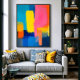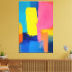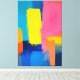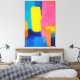 Capas audaces de bloques de color intenso crean un paisaje abstracto que palpita con energía. El azul, el rosa, el amarillo y el naranja interactúan en una armonía vibrante y dinámica.