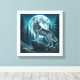 A beautiful image of a gray wolf in a forest howling at a full moon