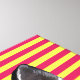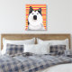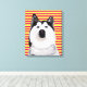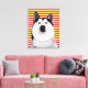 Hermoso arte en la pared de un perro, rayas rojas y amarillas y alegres dibujos caseros. Decoración interior para los amantes de la tranquilidad.